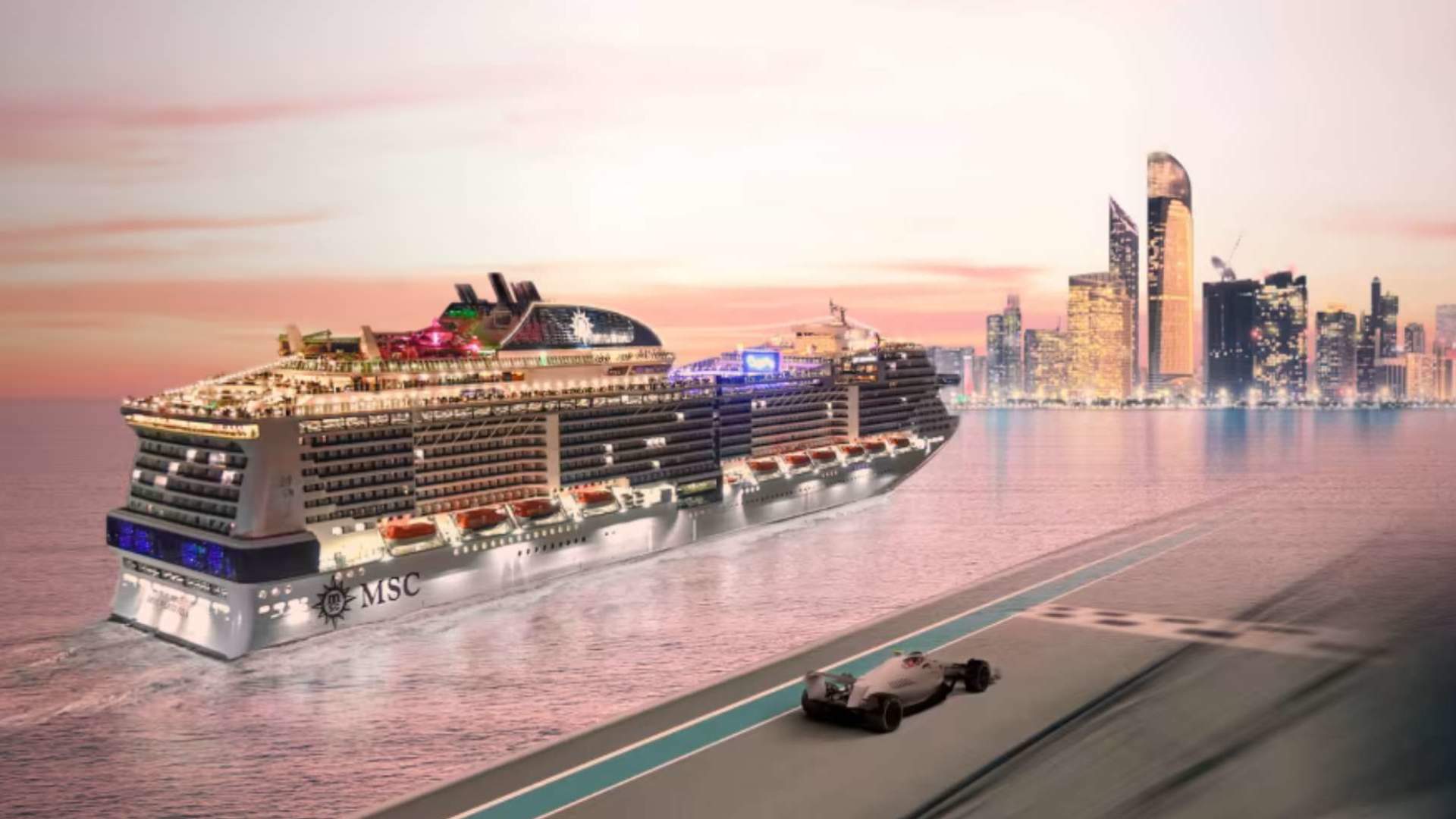 skrydžiai + bagažas (rank. ir reg.) + 4 n. MSC Virtuosa laive + 3 d. bilietai į F1 varžybas+ pervežimai į F1 trasą + pusryčiai, vakarienės + pramogos laive |